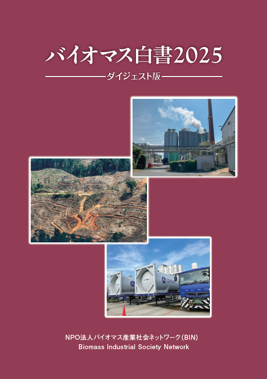 NPO法人バイオマス産業社会ネットワーク(BIN)では、「バイオマス白書2025」小冊子版(ダイジェスト版)およびサイト版を作成しました。ダイジェスト版は、24ページのカラー小冊子で、トピックス「2024-2025年のFIT/FIP制度の動向」「輸入バイオマスの問題」、